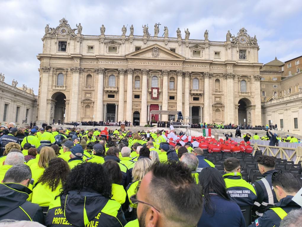 Tra i gruppi di volontari presenti, un numero significativo era rappresentato dalla Protezione Civile italiana. Questi volontari hanno svolto un ruolo cruciale non solo nel garantire la sicurezza dell’evento, ma anche nel condividere le loro esperienze e competenze con gli altri partecipanti. La Protezione Civile ha organizzato attività informative all’interno della Basilica di San Salvatore in Lauro, dove hanno illustrato i servizi che offrono nelle città italiane.